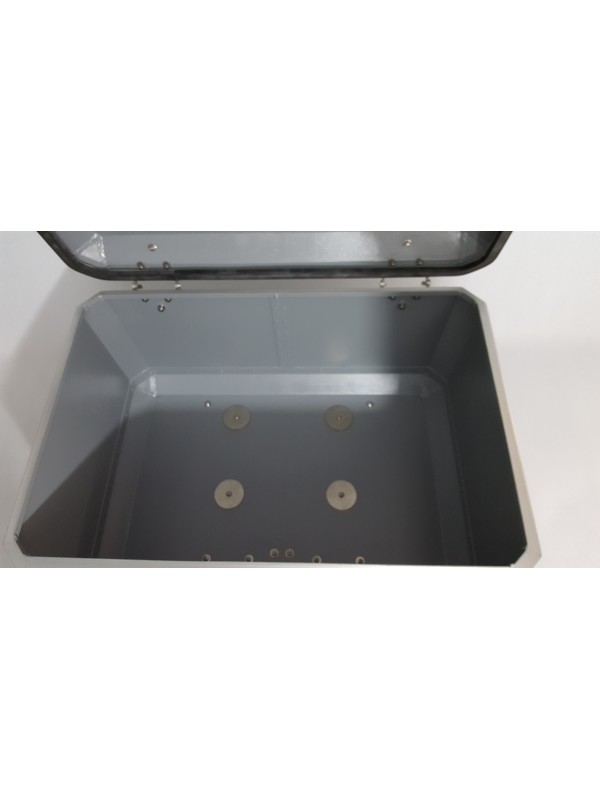 DESCRIÇÃO DO PRODUTO: PINTURA: Epóxi eletrostático. CORES: Alumínio prata. GARRAS DE FIXAÇÃO NA MOTO: Aço. FECHO DE FIXAÇÃO NO SUPORTE: Aço inoxidável com fechadura. AMARRAS AUXILIARES NAS TAMPAS: Nylon+UV fixada com rebites de impacto. FECHO DA TAMPA: Aço com fechadura. FECHADURAS: Conjunto de 2 peças com o mesmo segredo, acompanha duaschaves iguais.FIXAÇÃO DOS IMPLEMENTOS A MALA: Rebites de impacto em alumíniomoldados no local, não deixa pontas internas.PES: Nylon+UV injetado anti-ruído. CANTONEIRAS DE ACABAMENTO E PROTEÇÃO: Nylon+UV injetado aplicado comjunta de vedação EVA anti-ruido.TAMPA PROTETORA DAS FECHADURAS: Borracha látex preta. ALÇA: Em nylon reforçado removível que facilita o transporte (acessório não incluso, adquiridas a parte). VEDAÇÃO DA TAMPA: Em borracha automotiva dentro de calha, propiciando uma vedação completa.CAPACIDADE EM LITROS: 49 (1 1/2 capacete)MEDIDAS: Largura = 560 mm, Altura = 330 mm, Comprimento = 380 mmPESO: 6,5 KGCAPACIDADE DE CARGA 8 KG - ESTIPULADA PELO FABRICANTE, DEFINIDA PELA LIMITAÇÃO DA MOTOCICLETA.