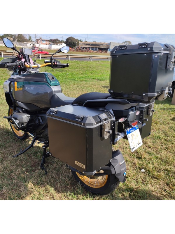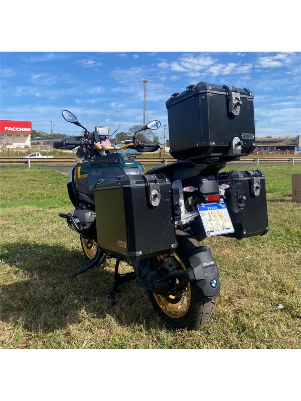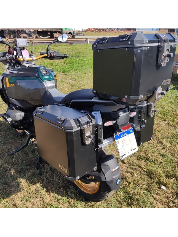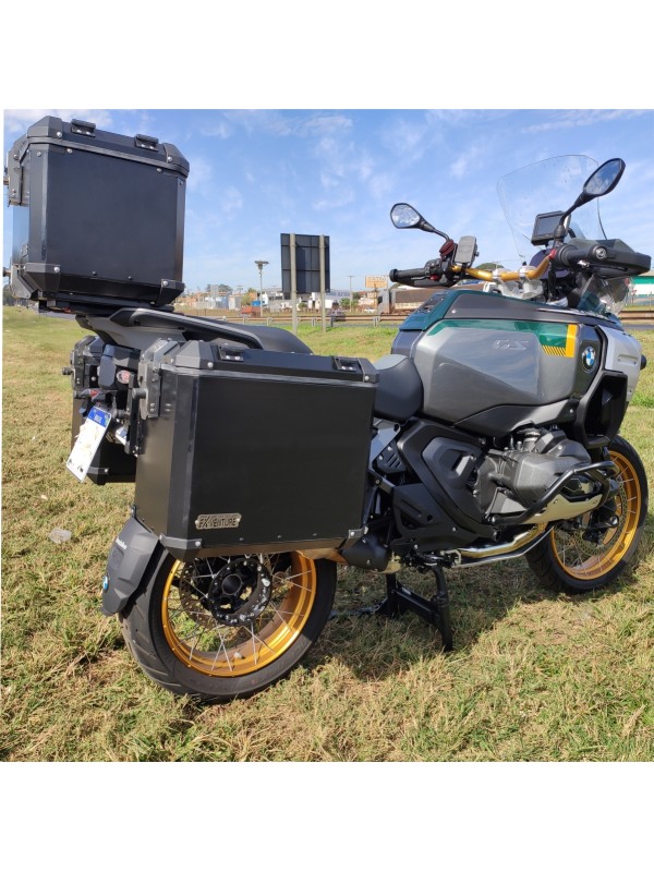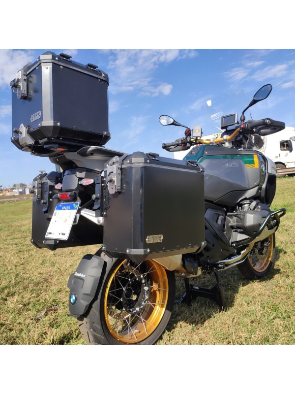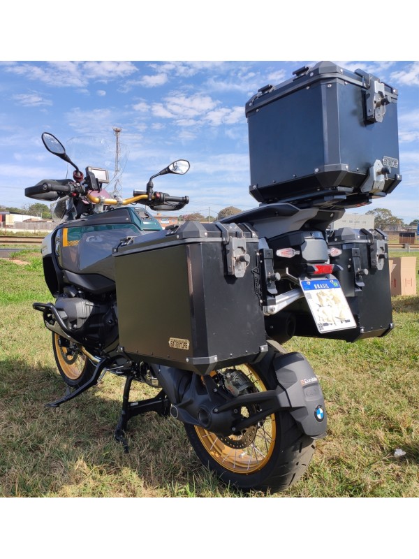 BMW R1300 GS ADV - KIT Baus lat. aluminio 54/53 L + BAULETO 39 L encaixe em aço direto no suporte original BMW (nao necessita suporte adicional)